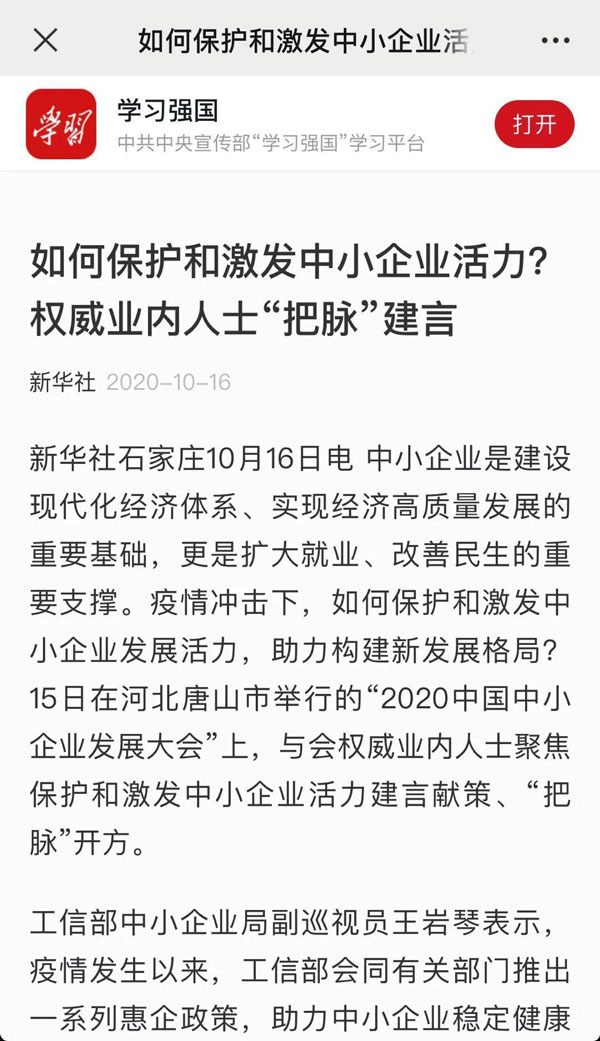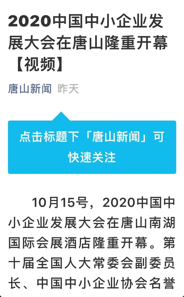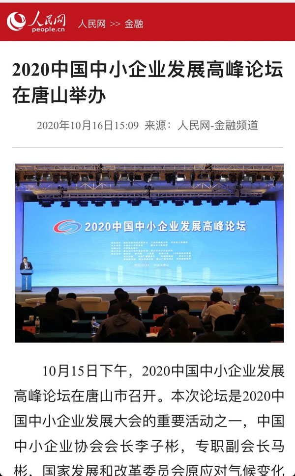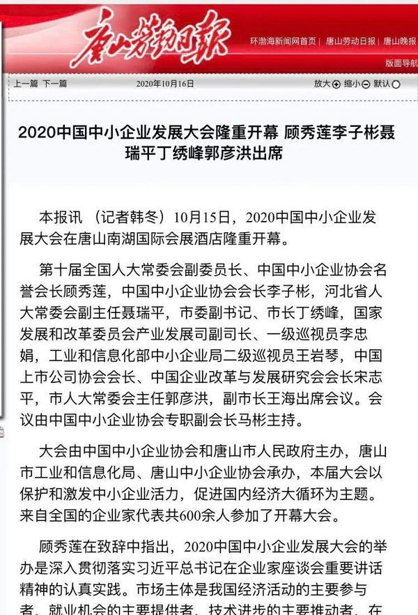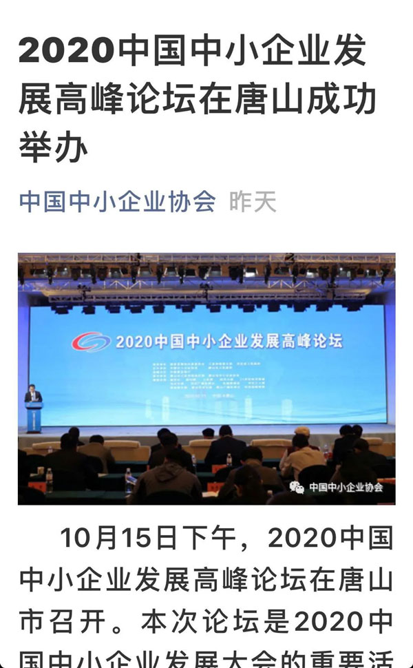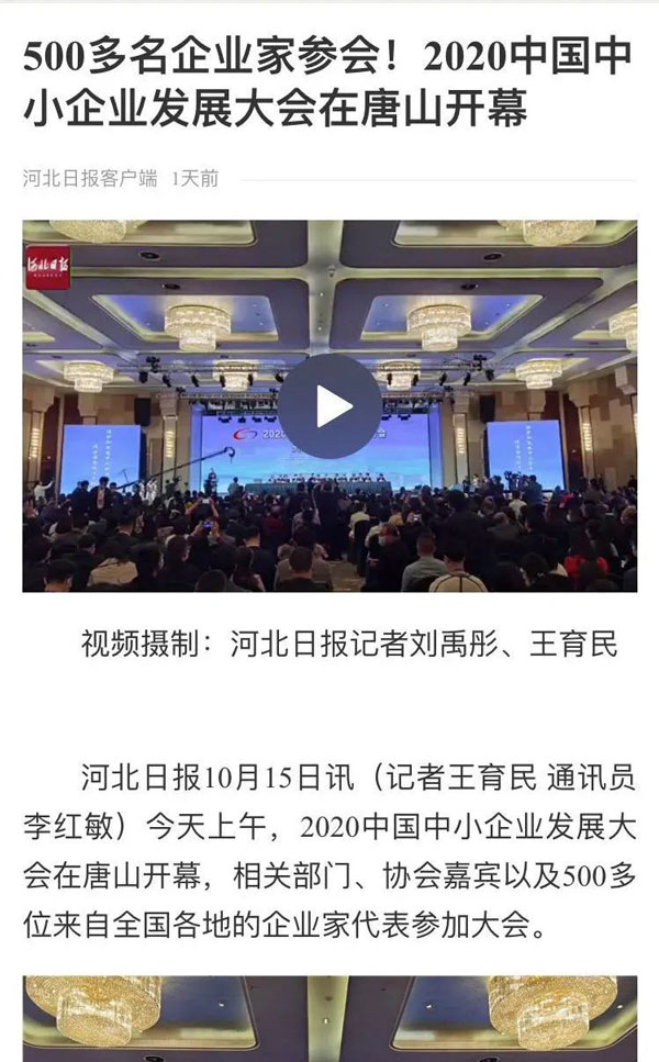 2020骞?0鏈?5鏃?16鏃ワ紝2020涓浗涓皬浼佷笟鍙戝睍澶т細鍦ㄦ渤鍖楃渷鍞愬北甯備妇鍔烇紝鍚勫ぇ鏂伴椈濯掍綋杩涜浜嗙浉鍏虫姤閬撱€