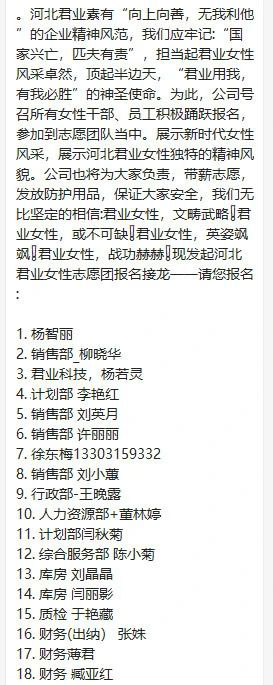 鍏徃鍛樺伐绉瀬韪婅穬鎶ュ悕鍔犲叆鈥滄姉鐤織鎰垮洟鈥濓紝鑷?021骞?鏈?2鏃ヨ捣锛屽埌鐜板湪宸叉湁鍗佸ぉ鏃堕棿锛屾瘡鏃?0鍚嶁€滃悰涓氱孩蹇楁効鑰呪€濆埌鐤儏闃叉帶妫€鏌ョ偣鎵у嫟锛岀疮璁¤揪100浜烘銆