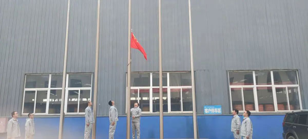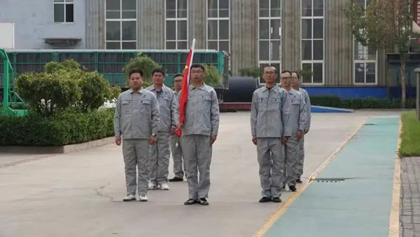 鍏徃钁d簨闀挎綐瀛樹笟鐜囬椹诲畧宸ュ巶涓€绾垮潥鎸佺敓浜с€佸伐浣滅殑骞查儴鍛樺伐浠竴璧峰弬鍔犲崌鍥芥棗浠紡銆傚弬鍔犱华寮忕殑鍚涗笟浜烘暣榻愬垪闃燂紝缁熶竴鐫€瑁咃紝绮剧楗辨弧銆傜敓浜у壇鎬诲吋鍏氭敮閮ㄤ功璁扮帇閲戝崕涓绘寔浜嗗崌鏃椾华寮忋€