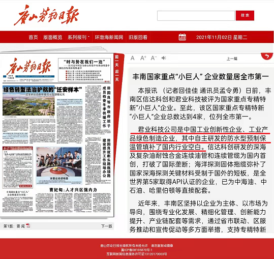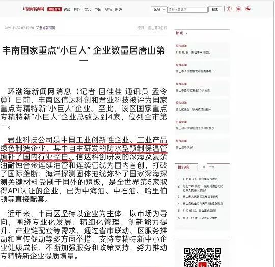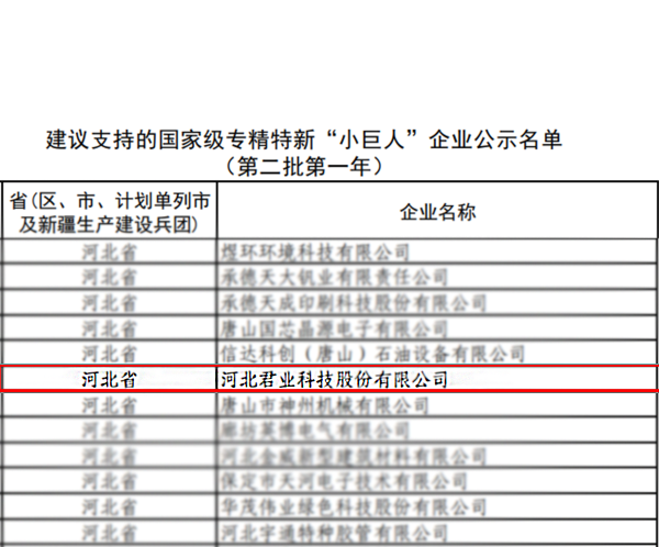 鏃ュ墠锛屽浗瀹跺伐涓氬拰淇℃伅鍖栭儴姝e紡鍙戝竷銆婂叧浜庡缓璁敮鎸佺殑绗簩鎵圭涓€骞村浗瀹剁骇涓撶簿鐗规柊鈥滃皬宸ㄤ汉鈥濅紒涓氬拰鍥藉锛堟垨鐪佺骇锛変腑灏忎紒涓氬叕鍛婃湇鍔$ず鑼冨钩鍙板悕鍗曠殑鍏ず銆嬩腑锛屾渤鍖楀悰涓氱鎶€鑲′唤鏈夐檺鍏徃鍑€熷湪淇濇俯绠¢亾琛屼笟寮哄ぇ鐨勮嚜涓诲垱鏂拌兘鍔涖€佷紭绉€鐨勪骇鍝佽川閲忓拰琛屼笟棰嗗厛鐨勫競鍦哄崰鏈夌巼锛屽叆閫夈€婂缓璁敮鎸佺殑鍥藉绾т笓绮剧壒鏂?灏忓法浜?浼佷笟鍚嶅崟銆嬨€