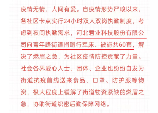 鍞愬北鐤儏鏉ヤ复鏃讹紝涓烘湁鍔涢樆鍑荤柅鎯呰繘涓€姝ユ墿鏁o紝娌冲寳鍚涗笟绉戞妧鑲′唤鏈夐檺鍏徃鍏氭敮閮ㄧ涓€鏃堕棿鎶曡韩鎴樷€滅柅鈥濅腑鍘伙紝鍏氭敮閮ㄤ功璁般€佸叕鍙歌懀浜嬮暱娼樺瓨涓氬拰鎬荤粡鐞嗘潹鏅轰附绉瀬涓诲姩涓烘姉鍑荤柅鎯呮崘娆炬崘鐗╋紝鍚戜赴鍗楃孩鍗佸瓧浼氭崘娆?涓囧厓锛岀敤浜庣柅鎯呴槻鎺с€佸悜涓板崡缁忔祹寮€鍙戝尯鎹愮尓鑲?00鏂わ紝鍚戦潚骞磋矾琛楅亾鎹愯禒琛屽啗搴?0濂椼€佽瑜?0濂椼€
