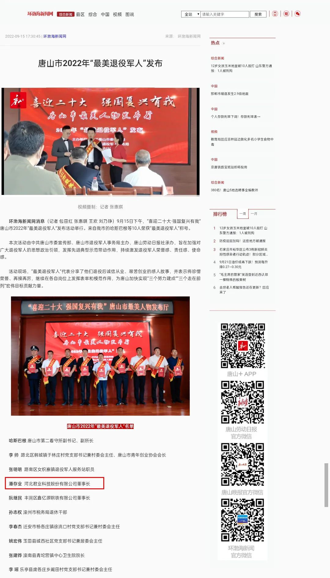 缂栬€呮寜锛?022骞?鏈?5鏃ワ紝鍞愬北甯傚瀹d紶閮ㄣ€佸攼灞卞競閫€褰瑰啗浜轰簨鍔″眬瀵?022骞村害锛傚攼灞卞競鏈€缇庨€€褰瑰啗浜猴紓杩涜浜嗗彂甯冦€傛娆″叏甯傚叡璇勯€夊嚭10鍚嶆渶缇庨€€褰瑰啗浜猴紝娌冲寳鍚涗笟绉戞妧鑲′唤鏈夐檺鍏徃钁d簨闀挎綐瀛樹笟鑽h€€鍏朵腑銆傝吘璁柊闂汇€佺幆娓ゆ捣鏂伴椈缃戙€佹渤鍖楁柊闂荤綉銆佸唨浜戝鎴风銆佹渤鍖楃綉缁滃箍鎾數瑙嗗彴銆佹渤鍖楁棩鎶ャ€佸攼灞卞姵鍔ㄦ棩鎶ョ瓑鍏ㄧ渷澶氬濯掍綋璁拌€呬簯闆嗙幇鍦猴紝骞剁悍绾锋姤閬撱€傝鐪嬫潵鑷獟浣撶殑鎶ラ亾銆